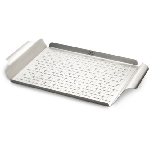 Serpenyő - grill, rozsdamentes, szögletes, mosogatógépben mosható, rozsdamentes acél külső felület, ergonomikus, rozsdamentes acél fogantyú, mérete 3,5 × 30 × 44 cm (Ma×Sz×H), inox kivitel A WEBER Deluxe grill serpenyő nagyszerű kiegészítő, ami megkönnyíti számodra a grillezett finomságok elkészítését. A serpenyőre bátran tehetsz halat, zöldséget, húst vagy bármit, ami könnyen leeshetne