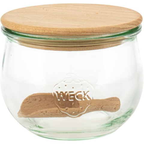1 kép WECK Ételtároló doboz fa kislapáttal, 0,5 l Weck, duci