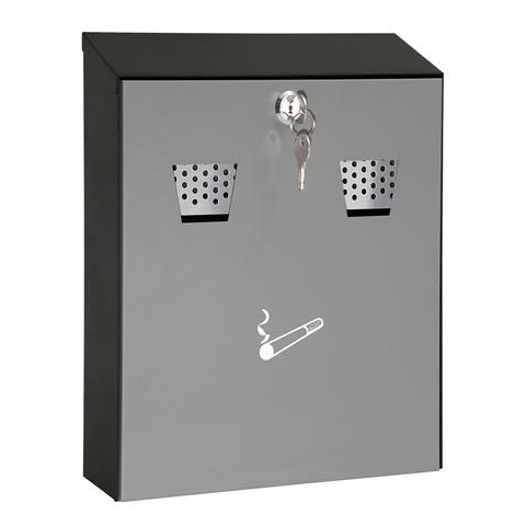 Fali hamutartó, acél, két nyílással, WEDO, szürke/fekete - UW030 - Hamutartók - biztonságos tárolás 2 nyílással kulccsal zárható fedele megakadályozza az esővíz becsorgását könnyen üríthető méret:25,6x7,5x32 cm szín: szürke/fekete súly: 2,1 kg űrtartalom: