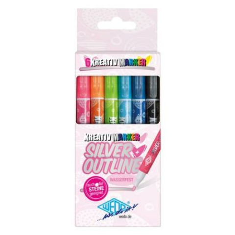 1 kép WEDO Filctoll készlet, 1-2 mm, metál ezüst, WEDO, 6 különböző színű kontúrral