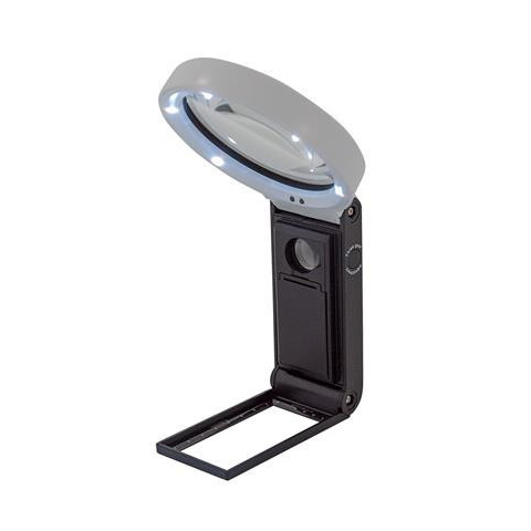 Praktikus nagyító nagy látómezővel és LED-es megvilágítással, kézi és asztali nagyító egyben. A kiváló minőségű, 9 cm átmérőjű akrillencse 2,5-szeres nagyítást, az 1,9 mm átmérőjű kis kiegészítő lencse 10-szeres nagyítást biztosít. Ideális háztartásban vagy hobbi kellékként. Minden apró betűs rész, például a csomagoláson feltüntetett összetevők vagy használati utasítások könnyen olvashatóvá válik. A beépített LED és UV fény optimális m