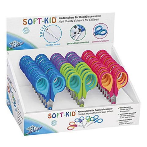 Rozsdamentes acél olló, mely gumigyűrűvel van ellátva. 11,5 cm-es, hegyes végű. Különböző fiatalos színek, 4 szín vegyesen egy 30 db-os displayben. Display mérete: 25x16,3x12 cm