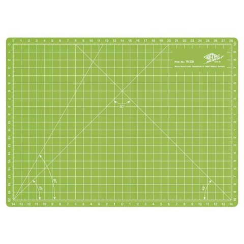Vágóalátét, barkácsoláshoz, A4, WEDO Comfortline, zöld (UW061) öngyógyuló barkácsalátét mindkét oldalán centiméter rácsozással, különböző átmérőjű körökkel és szögekkel nyomtatott 3-rétegű, extrém vágásálló középső réteggel, mindkét elasztikus fedőrét
