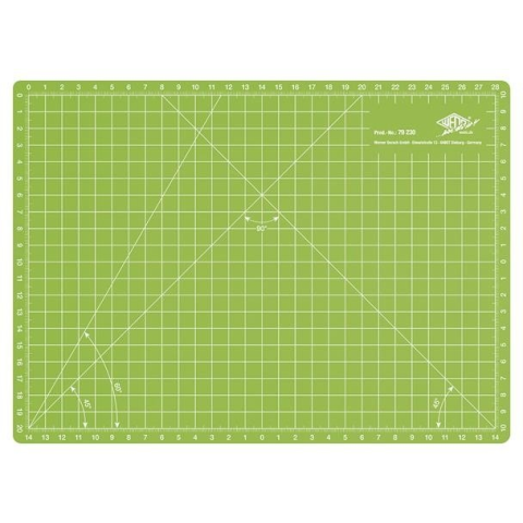 öngyógyuló barkácsalátét mindkét oldalán centiméter rácsozással, különböző átmérőjű körökkel és szögekkel nyomtatott 3-rétegű, extrém vágásálló középső réteggel, mindkét elasztikus fedőréteg beengedi magába a vágást és kíméli a vágószerszám élét vastags