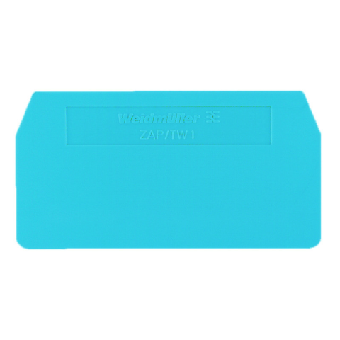 Sorkapocs véglap Z sorozathoz ZAP/TW 1 BL, kék, 1608750000 Weidmüller Elválasztó lemez (kapocs), Vég- és elválasztó lemez, 59.5 mm x 30.5 mm, kék Elválasztó fal szomszédos keresztösszekötők sorkapcsainak elektromos elválasztásához. Az elválasztó lemez em