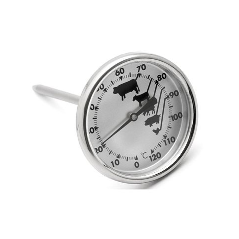 Konyhai hőmérő - típusa: mechanikus, rendeltetés: sütéshez, hőmérséklet-érzékelőt tartalmazhossza 10 cm, minimális hőmérséklet 0 °C, maximális hőmérséklet 120 °C A Weis húshőmérő kiváló minőségű rozsdamentes acélból készült. 0-tól 120 ° C-ig méri a hús hőmérsékletét. A különböző húsfajtákhoz megfelelő hőmérsékletet jelző kijel