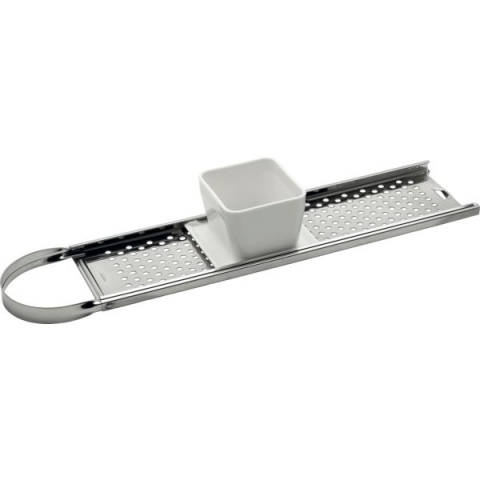 Weis Profi galuskareszelő 54 cm hosszban és 12 cm szélességben. Rozsdamentes acélból és műanyagból készült. Tartalmaz egy fehér edényt 11,7 x 12,2 x 7,5 cm mérettel. A lyukak átmérője 10 mm. Praktikus segítőtárs minden konyhába a hagyományos galuskák elkészítéséhez.