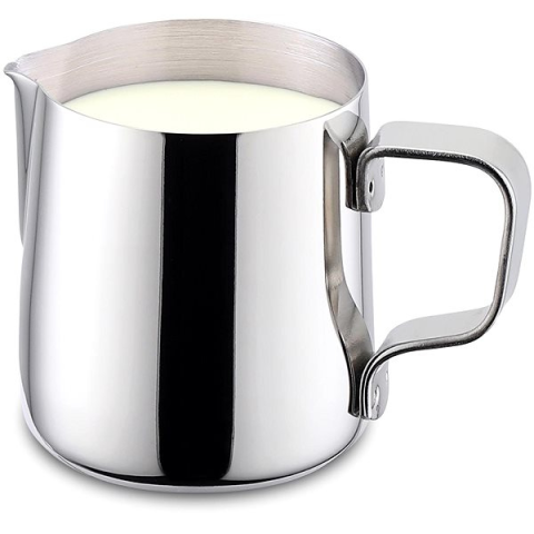 Tejkiöntő - tejhabosításhoz, rozsdamentes edény ellátva füllel, űrtartalma 100 ml, ezüst kivitel A Weis tejkiöntővel stílusosan szolgálhatod fel a tejet. Belső térfogata 100 ml, ami 6-8 csésze kávéhoz elegendő. Tejhab készítésére is használható, és forró gőzfúvókával ellátott kávéfőzőkhöz is alka