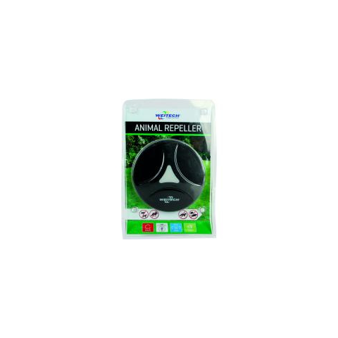 Weitech, falra szerelhető ultrahangos, hatékonyan működő kisállatriasztó. Kert, autó, garázs, stb védelmében segítséget nyújt egyaránt.