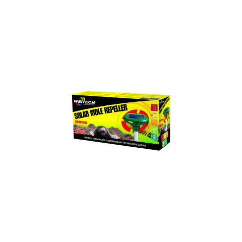 Weitech napelemes riasztó, mely akár 350 m2 területen belül véd a vakondok és föld alatti rágcsálók ellen.