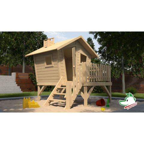 Lotti játszóház terasszal. Weka játszótér építés előregyártott minősített elemekből