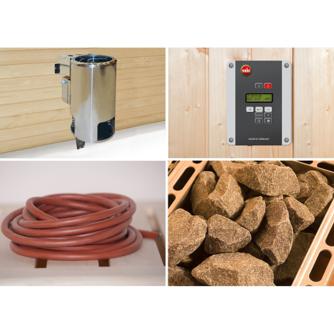 A Weka 5-es szaunakályha készlet tökéletes az Ön számára. A 3,6 kW-os teljesítményű BioAktiv kombi kályha mellett ez a csomag a megfelelő kiegészítőket is tartalmazza. A digitális rendszervezérlés garantálja az egyszerű kezelést és lehetővé teszi a fokozatmentes hőmérséklet szabályozást. A csomag tartalmazza a berendezéshez illő csatlakozókábelt.