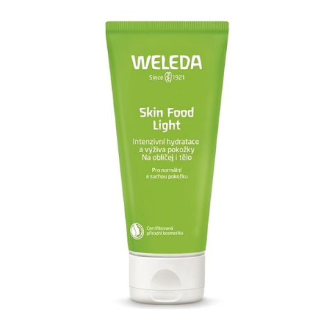 Testápoló krém - hidratáló, védő, tápláló, bőrpuhító és nyugtató hatás, BIO termék, száraz bőrre ajánlott, alkalmas érzékeny, zsíros, normál, kombinált, száraz és érett bőrtípusra, színezékmentes, illatmentes, természetes olaj tartalmú és természetes összetevőjű, mindennapi használatra, hatóanyaga kamilla, orvosi körömvirág és napraforgóolaj, frissítő illat, űrtartalma 75 ml A Skin Food Light azonnali enyhülést nyújt a száraz bőrnek. Ez a Ski
