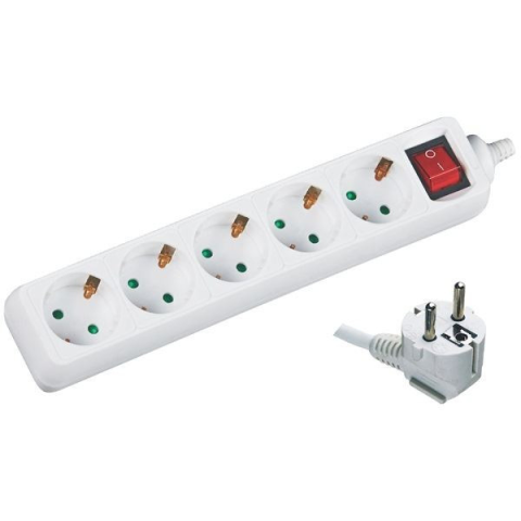 1 kép WELL 5-ös hálózati elosztó kapcsolóval 5m fehér (EXTS-5S5M-SW-WL)