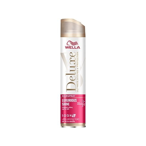 Hajlakk - luxus kozmetikum, fényesítő, hajsimító és fixáló hatás, vékony szálú, sérült és száraz hajra, kócolódás elleni, külső hatások elleni és töredezés elleni védelem, extra erős fixálás, 250 ml-es kiszerelésben A Wella Deluxe Luxurious Shine egy erős tartást biztosító hajlakk, amely hosszantartó rögzítést nyújt, miközben káprázatos fényt kölcsönöz a hajnak. Tökéletes bármilyen frizurához – a laza hullámoktól