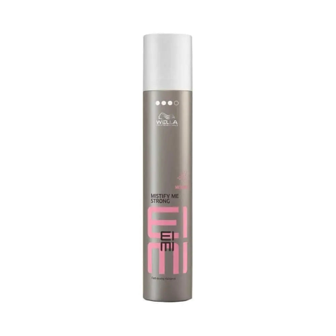 Wella EIMI Mistify Me Strong Hajlakk Erős Tartásért. A Wella EIMI Mistify Me Strong Hajlakk gyors száradást és erős tartást biztosít, amely akár 24 órán át megőrzi frizurája formáját. Micromist technológiájának köszönhetően finom permetet képez, amely természetes megjelenést nyújt anélkül, hogy elnehezítené a hajat.. Jellemzői:. Erős tartás akár 24 órán át. Micromist technológia a precíz permetezésért. Könnyű formula, amely nem nehezíti el a hajat. Gy