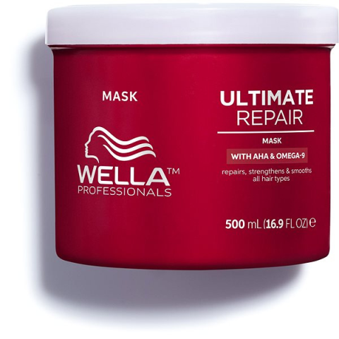 Hajmaszk - nőknek, kiöblítendő, minden hajtípusra, 500 ml űrtartalom, hatása fényesítő, hajsimító és tápláló A WELLA PROFESSIONALS Ultimate Repair hajmaszk mélyen táplálja a hajat anélkül, hogy elnehezítené. Finoman kisimítja a töredezett hajvégeket és helyreállítja a hajszálakat. Vajkrémes textúrája simább
