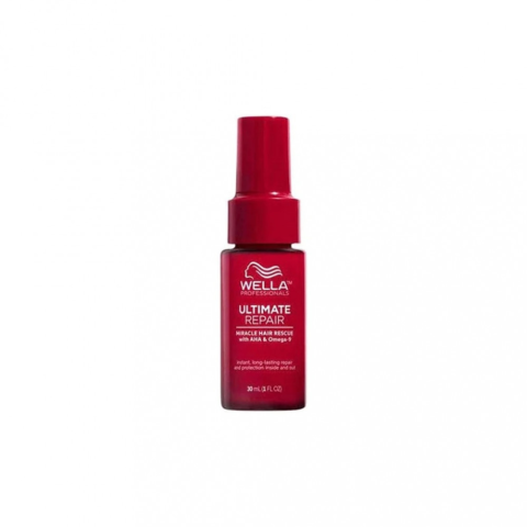 Wella Care Ultimate Repair Szérum Sérült Hajra 30ml. A Wella Ultimate Repair Miracle Hair Rescue szérum intenzív ápolást nyújt a hőformázás, kémiai kezelések és környezeti károsodás által érintett haj számára. Mélyen behatol a hajszálakba, hogy helyreállítsa, táplálja és megerősítse a hajat, visszaadva annak egészséges megjelenését.. Jellemzői:. Intenzív regenerálás sérült hajra. Erősíti és revitalizálja a hajszálakat belülről. Táplálja és védi
