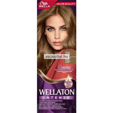 Wella Wellaton tartós intenzív krémhajfesték 7/0 középszőke 50ml A doboz tartalma: 1 tubus krémhajfesték 50ml 1 db színelőhívó folyadék (6%) 50ml 1 intenzív hajfénykiemelő pakolás 10ml 1 használati utasítás 1 pár kesztyű