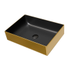 Welland 9636E munkalapra telepíthető mosdókagyló, ami tökéletesen kiegészíti minden divatos fürdőszoba belső kialakítását. Az arany és fekete színek tökéletes összhangja és a minimál stílusú, letisztult szögletes formatervezés egy különleges eszétikai élm