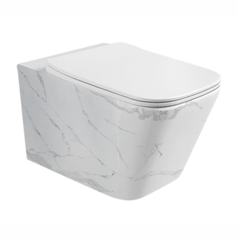 Welland Cono WC csésze, Tornado rendszerű öblítéssel, vékonyított ülőkével, valamint lassan záródó soft-close duroplast ülkével, márvány mintás felülettel. A WC-ülőke antibakteriális és könnyen tisztítható felülettel rendelkezik, a gyorskioldó rendszer pe