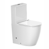 Welland Duo Rimless alsó/hátsó kifolyású monoblokkos/kompakt WC szett vékonyított ülőkével és antibakteriális bevonattal magesfényű fehér színben. Lassan záródó soft-close duroplast ülkével. A perem nélküli rendszer megkönnyíti a higiénia és tisztaság fen
