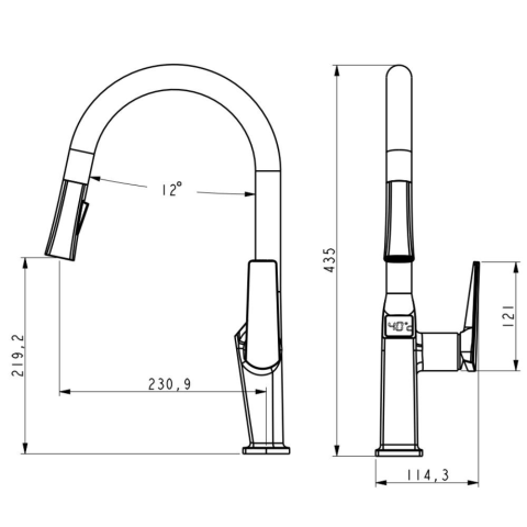 1 kép Welland FH-3425 mosogató smart csaptelep - kihúzható multifunkciós fej - vízhőfok kijelző (szürke)