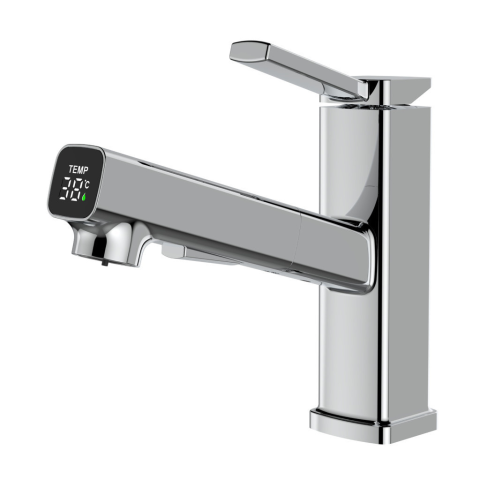 Welland FH-4400 kihúzható fejes mosdó csaptelep - vízhőfok kijelző (króm)