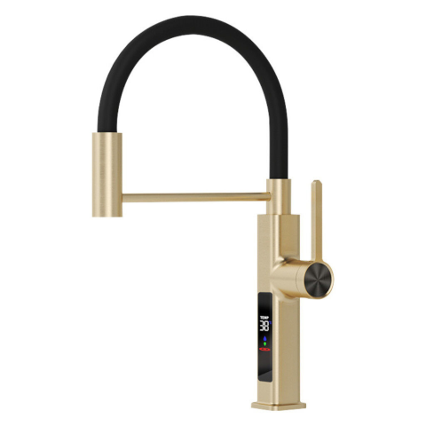 1 kép    Welland H-6047 mosogató smart csaptelep - kihúzható flexibilis fej - vízhőfok kijelző (fekete - arany)