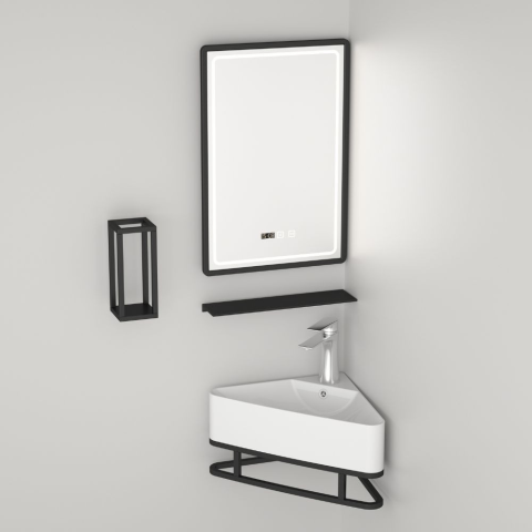 1 kép Welland Loft 5 részes sarok fürdőszobabútor szett LED tükörrel - 56 cm