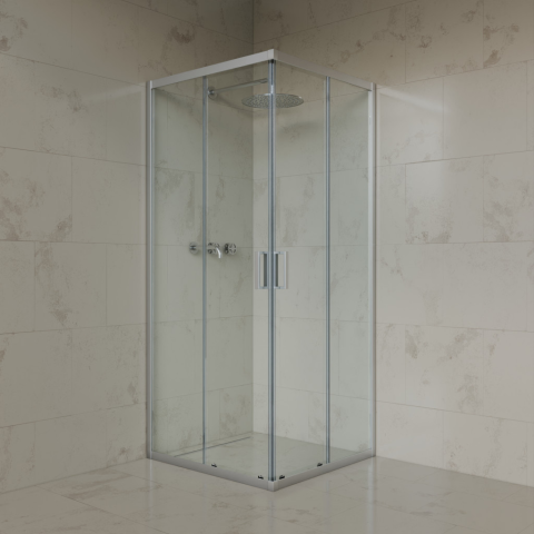 Welland SQ-80 prémium zuhanykabin elhúzható görgős ajtókkal. Mágneses ajtózárral ellátott, könnyen becsukható és nyitható, precízen illeszkedő, egymásba tolható elhúzható ajtók. Szögletes kialakítás, a zuhanykabin telepíthető zuhanytálcára vagy közvetlenü