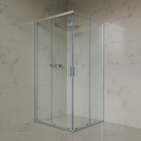 Welland SQ-90 prémium zuhanykabin elhúzható görgős ajtókkal. Mágneses ajtózárral ellátott, könnyen becsukható és nyitható, precízen illeszkedő, egymásba tolható elhúzható ajtók. Szögletes kialakítás, a zuhanykabin telepíthető zuhanytálcára vagy közvetlenü