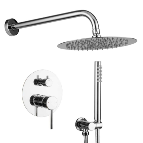 Welland Wall-Pro-2 falsík allati zuhanyszett. A készlet tartalmazza a váltókapcsolós csaptelepet, a kézizuhanyt gégecsővel és fali rögzítővel, valamint az esőztető fejzuhanyt a zuhanykarral. Kerekített formatervezés, kiváló eleme akár egy modern, minimál