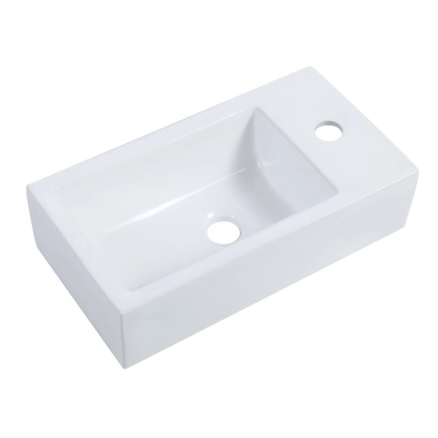 Welland Y9272L falra szerelhető mosdókagyló. Jobb oldali kialakítás, a medence a telepítés után a bal oldalon, a csaptelep a jobb oldalon helyezkedik el. Helytakarékos mosdókagyló, ami tökéletes megoldás olyan fürdőszoba vagy WC helyiségekben, ahol csak