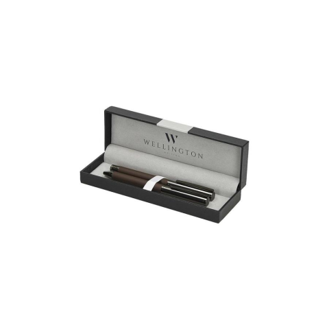 Golyóstoll készlet WELLINGTON Stamford golyóstoll + rollertoll barna díszdobozban Pérmium minőségű Wellington golyóstoll készlet. Készlet tartalma: 1db golyóstoll és 1db rollertoll.
