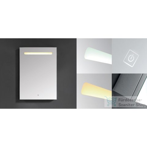 - 60 × 12 × 70 cm - fényes alumínium keret - fényes alumínium polcok - 110 fokban nyíló soft-closing ajtópántok - érintőgombos világítás kapcsoló (IP44) - hidegfehér-melegfehér fény árnyalat állítás (3000K - 6000K)