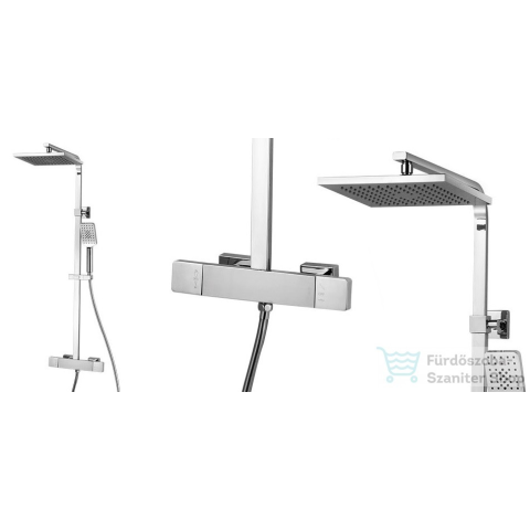 Wellis Cascade zuhanyoszlop Termék jellemzők: Termosztátos zuhanycsaptelep Méret: 311 x 505 x 905-1350 mm Rozsdamentes acél zuhanyoszlop-test Állítható trópusi zuhany Állítható magasságú kézitus Beépített termosztátos keverőszelep Beépített váltószelep