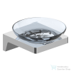 Krómozott, fém/üveg fali szappantartó. Méret: 10,9×11,5×5,7 mm
