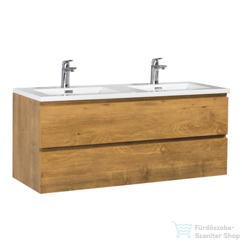 Mosdókagyló és csaptelep nélkül! 119,2 × 47,4 × 50,0 cm 2 fiókos mosdószekrény • melamin tölgy színű • soft-close fiókrendszerrel