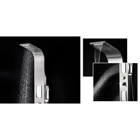 Napoli hidromasszázs zuhanypanel TermékjellemzőkFelületerozsdamentes acélSzíneszürkeCsaptelepegykaroshidromasszázs tűfúvókák száma2x50Fejzuhanytrópusi esőztetősGaranica2 évTermék mérete20x45x160 cmTermékleírásA Napoli zuhanypanel 2x50 tűfúvókás masszáz