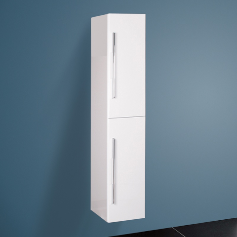 WELLIS NINA függesztett magas szekrény Elegáns, fehér függesztett magas szekrény a fürdőszobához. Kompakt 35 cm széles kivitelben, 140 cm magas, fali rögzítéssel. Praktikus tárolás modern designban. A termékről A WELLIS NINA függesztett magas szekrény