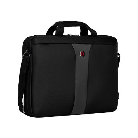 Laptoptáska - uniszex, 17" méretig, belső zseb és rendszerező, zárás cipzár segítségével, anyaga poliészter, fül, vállpánt, hátsó táskapánt, külső méretek 34 × 44 × 8 cm (Ma×Sz×Mé), fekete kivitel A mobil irodák szállításának legmegfelelőbb eszköze a komoly stílusú és kitűnő elrendezésű Wenger táska. Akár 17"-os notebook elhelyezésére is alkalmas, tökéletes védelmet biztosít az ütés