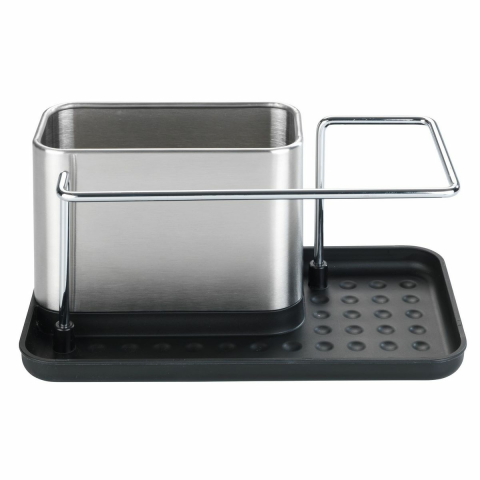 A német Wenko cég kiváló minőségű rozsdamentes acél szervezője segít a mosogatószerek egy helyen történő elrendezésében, így rendet tartva a mosogató körül. A tárolóhelyre elfér a mosószer, a szivacs, a súrolószivacs, a kefék stb. A rongyot vagy a konyharuhát könnyen felakaszthatja, szabadon megszáradhat, anélkül, hogy a konyhai munkalapra tenné vagy a mosogatóban hagyja. Így megakadályozhatja a baktériumok szaporodását és a kellemetlen szagok kialakul