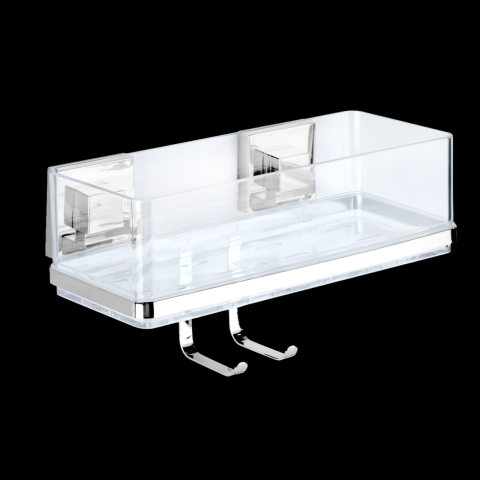 WENKO VACUUM-LOC QUADRO POLC FALI 25,5X15X14CM AKASZTÓKKAL, ÁTTETSZŐ-KRÓM bútor termékleírás