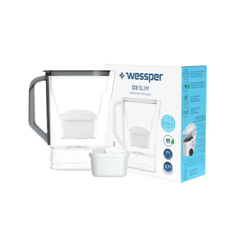 Mellékelt patronok száma: 1 db Teljes térfogat: 2,7L Szűrt víz térfogata: 1,5 liter Termék szélesség: 227mm Készülék magassága: 254 mm Termék mélysége: 102 mm A Wessper D3 Slim Aquamax egy modern és ártalmatlan hűtőkancsó robusztus és karcálló műa