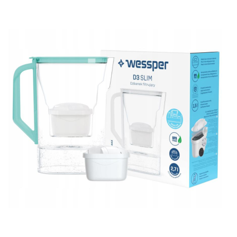 Mellékelt patronok száma: 1 db Teljes térfogat: 2,7L Szűrt víz térfogata: 1,5 liter Termék szélesség: 227mm Készülék magassága: 254 mm Termék mélysége: 102 mm A Wessper D3 Slim Aquamax egy modern és ártalmatlan hűtőkancsó robusztus és karcálló műa