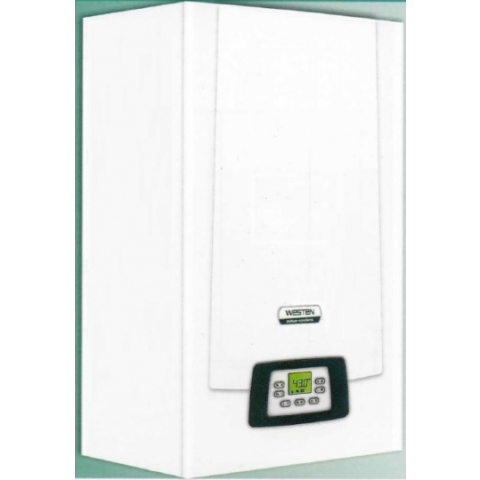 "Gyártói kód: 7385546 Gyártó: WESTEN Hőteljesítmény: 24 kW Hatásfok: 93 % Tágulási tartály: 7 l Fütési kör max. nyomása: 3 bar Méretek: 700x400x299 mm Tömeg: 30 kg Földgáz fogyasztás: 2,71 m3/h Elektromos védettség: IPX5D"