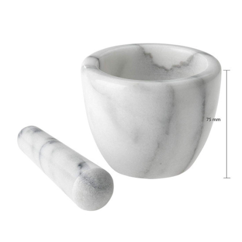 A márvány mozsár és törő segítségével könnyedén készíthetünk fűszerkeverékeket, illetve törhetünk apróra magvakat.