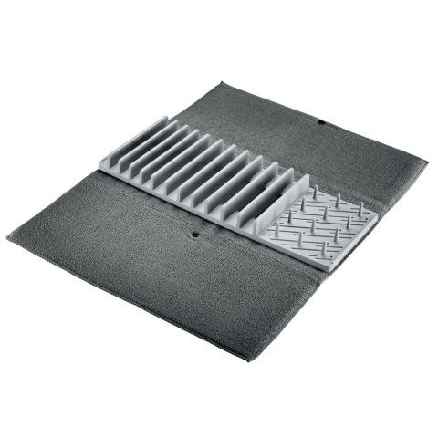 A kiváló nedvszívó és foltálló anyagból készült, műanyag edénytartóval ellátott, kiváló edénycsepegtatő biztosítja a frissen mosott edények, poharak, fazekak, serpenyők stb. tökéletes száradását otthon és útközben is. Mikroszálas anyagból készült, belső párnázással, a műanyag tartó BPA-mentes és mosogatógépben mosható. A szövetrész praktikus hurokkal rendelkezik a felakasztáshoz, és össze is hajtható, így helyet takarít meg a tároláskor.