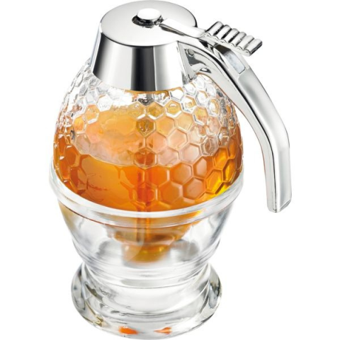 Westmark Deluxe üveg méztartó krómozott fedéllel, 200 ml űrtartalommal. Az alján található adagolózár megakadályozza a csöpögést. Ideális mindenkinek, aki megédesítené az életét.